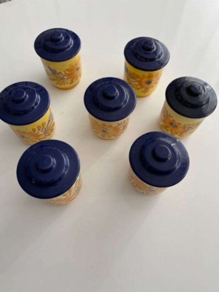 Lot de 7 pots en céramique, en l’état ( seront à nettoyer et deux sont un peu ébréchés => voir photos ) . 15€
