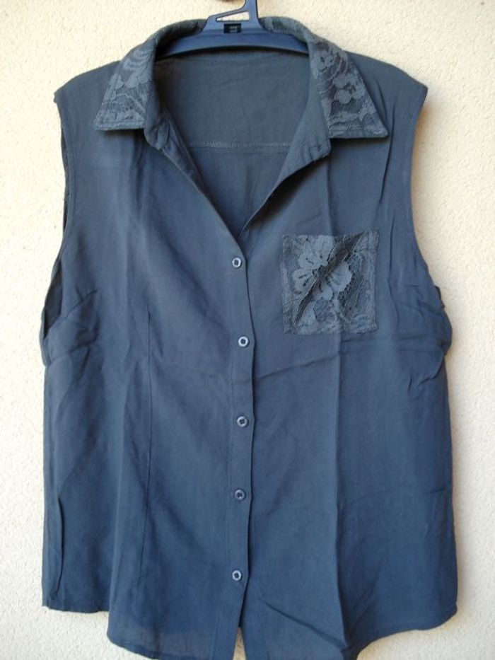 Chemisier sans manche avec empiècements dentelle. Marque : Mim. Taille 38. Très bon état.