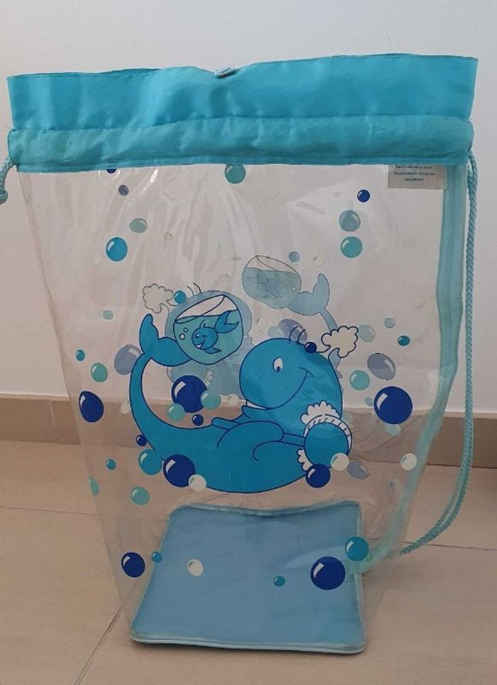 Grand sac 70 cm en matière transparente. Corde de serrage. Idéal pour ranger linge jouets ou autres.