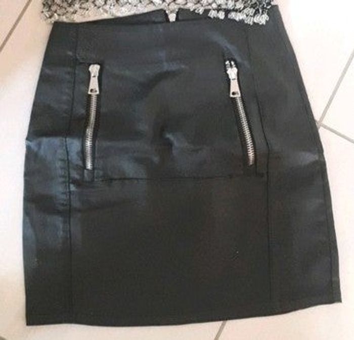 Jupe courte courte en tissu extensible zippée. Empiècements fantaisie. Galbe la silhouette. Taille S. Neuve0 #rhabillespourlhiver !