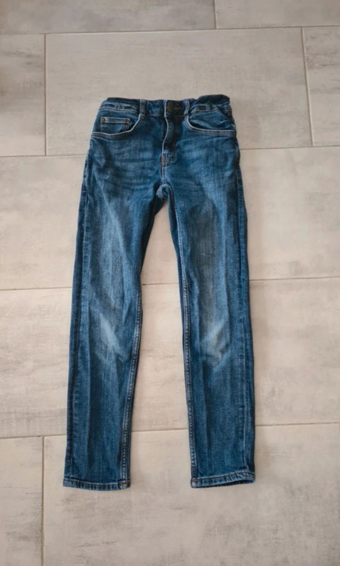 Jean slim, taille 12 ans (XXS), Kiabi. Il est ajustable au niveau de la taille. Excellent état. 99% coton, 1% élasthane. #jeanslimgarcon #jean12ans