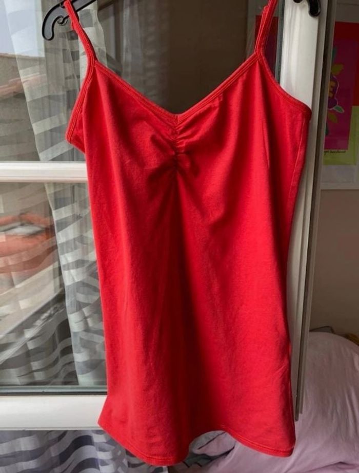 Débardeur / petit haut à bretelles rouge uni Très bon état Taille 2 = 38