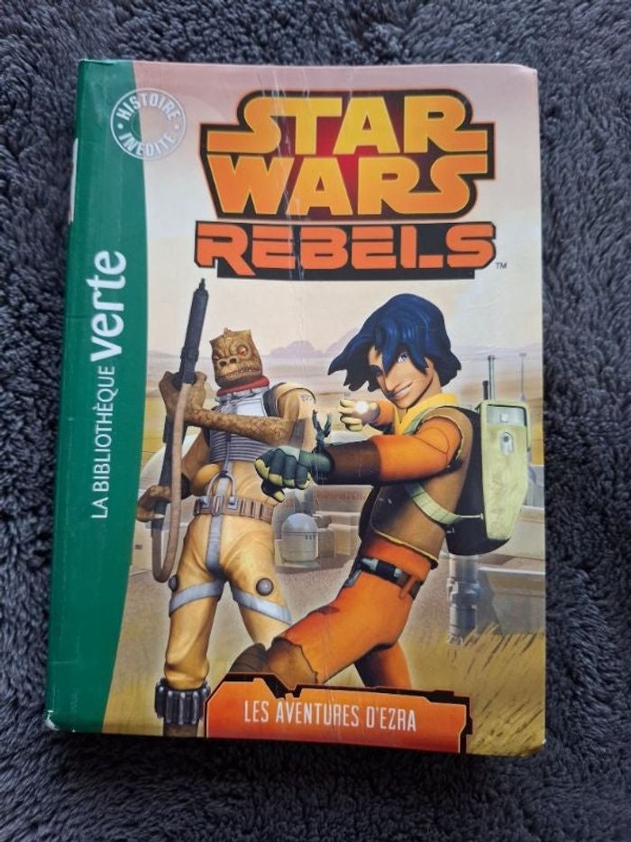 Livre Star Wars Rebels Les aventures d'Ezra en bon état Hachette Jeunesse, La Bibliothèque verte Ezra, quatorze ans, habite seul sur Lothal, une planète occupée par l'Empire. Pour survivre, le garçon s'est fixé une règle : ne compter que sur lui-même ! Mais lorsque Bossk, le chasseur de primes à qui il sert de guide, tombe dans le piège d'un Impérial corrompu, Ezra se retrouve embarqué dans une dangereuse course-poursuite. Pour s'en sortir, l'adolescent va devoir apprendre à travailler en équipe !