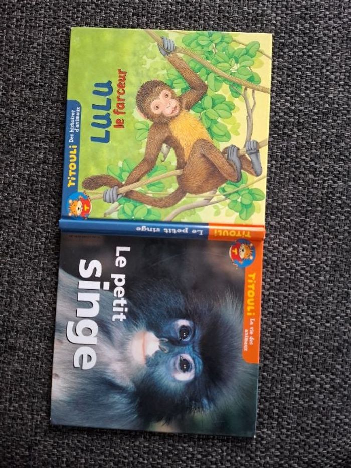 2 livres en 1, d'un côté le petit singe et ses caractéristiques, de l'autre, Lulu le farceur, une jolie histoire