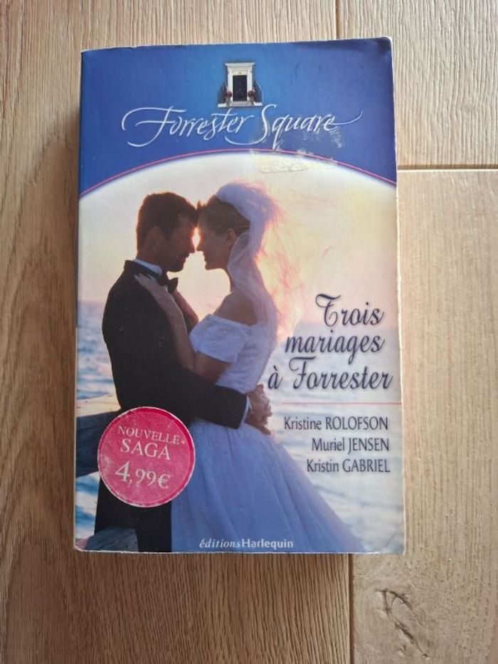 Mini prix pour ce roman Trois mariages à Forester car livre jauni mais bon état général à part cela Éditions Harlequin Le propriétaire n'a qu'un rêve : voir ses trois fils, incorrigibles séducteurs et célibataires endurcis, rencontrer enfin la femme de leur vie.. 404 pages lues avec beaucoup de plaisir