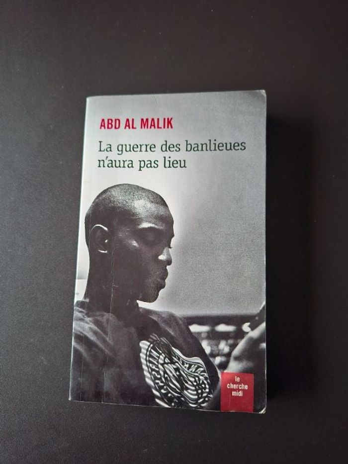 Témoignage La guerre des banlieues n'aura pas lieu de Abd Al Malik en bon état Éditions Le cherche midi La guerre des banlieues n'aura pas lieu signe l'entrée d'Abd Al Malik dans la galaxie littéraire. Tel Aimé Césaire dans son Cahier d'un retour au pays natal, il s'y engage " debout et libre ". Comme le Rimbaud des Lettres du voyant, il s'y conduit en " travailleur de la poésie ". À la fois visionnaire et paisible, il lance à la façon de Martin Luther King : " I have a dream ! " Il ose rêver et interpeller l'avenir. Il rêve de couleurs dans la grisaille des quartiers, de baume sur les blessures du quotidien, de lumière et d'amour dans les caves de l'obscurantisme. Il rêve de voir chacun trouver sa voie, comme il a lui-même trouvé la sienne. Il rêve que toutes les voies individuelles convergent dans la concorde et la fraternité.. Le chanteur et rappeur nous offre un beau livre qui fait réfléchir.. Prix d'achat 10 euros