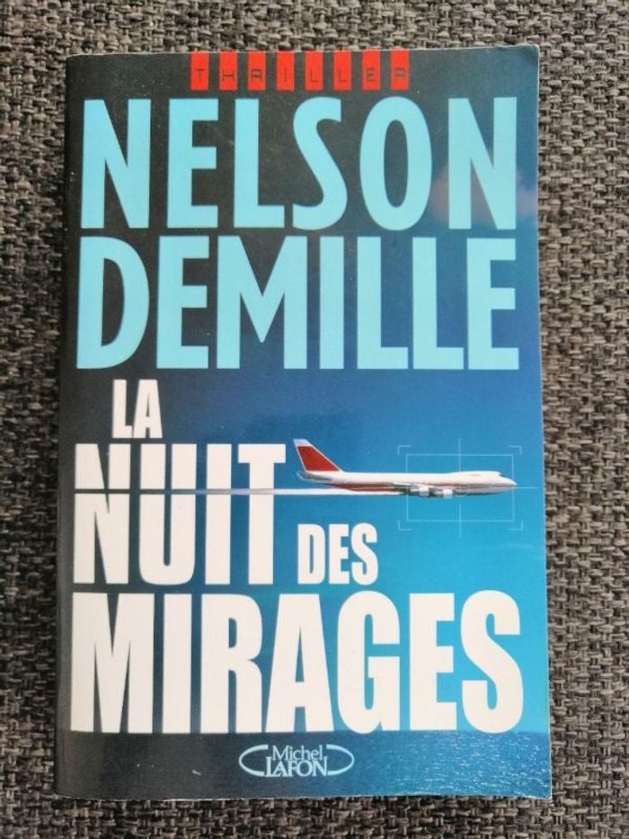 Thriller de Nelson Demille La nuit des mirages en très bon état Éditions Michel Lafon Avec un style brillant et un suspense captivant, l'auteur, maître du genre, explore l'une des plus mystérieuses tragédies, l'explosion en plein ciel du vol 800 NY-Paris le 17 juillet 1996 où 230 personnes y trouvèrent la mort. 200 témoins rapportèrent qu'un filet de lumière avait surgit de l'océan avant que l'avion ne se désintègre.. Livre passionnant, lu avec beaucoup de plaisir jusqu'à la dernière page.. Prix d'achat 22.50 euros