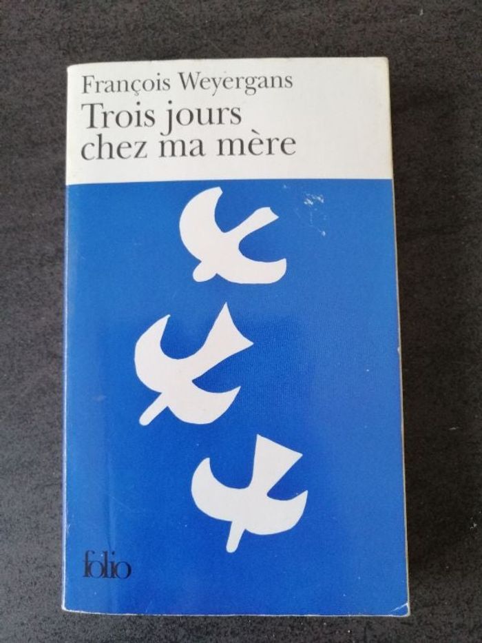 Mini prix pour ce prix Goncourt Trois jours chez ma mère de François Weyergans car un peu tâché mais bon état général Éditions Folio Le héros de ce livre, un homme désemparé, décide, le jour des ses 50 ans, d'annuler tous ses rendez-vous, afin d'essayer de savoir où il en est. Il voudrait changer de vie, de métier, de femme, de ville et même d'époque..