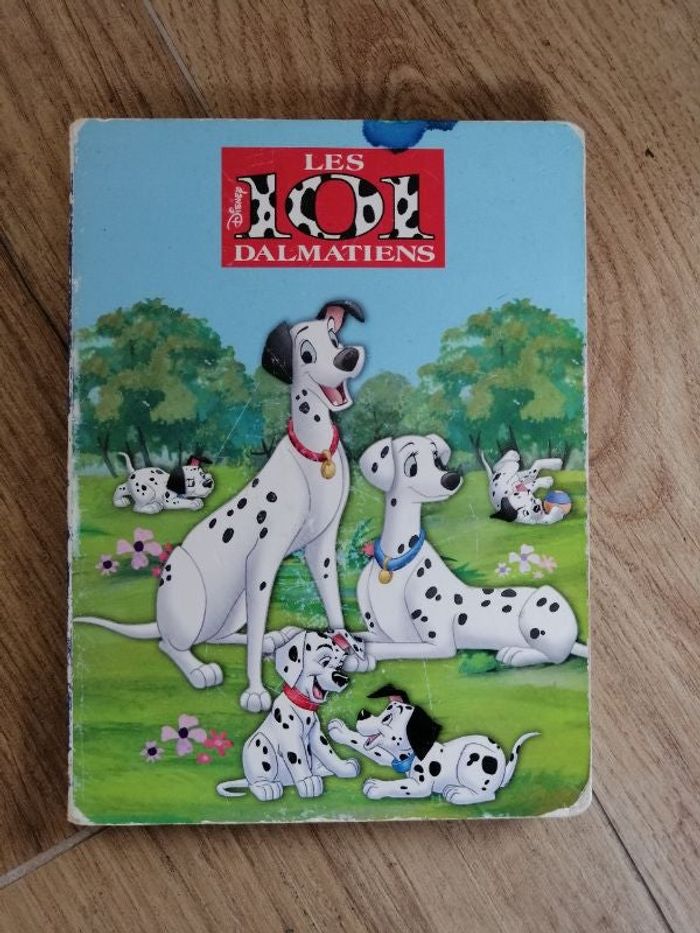 Livre Les 101 Dalmatiens de Disney en bon état Mini prix pour ce livre car couverture cartonnée un peu abîmée mais bon état général à part cela..