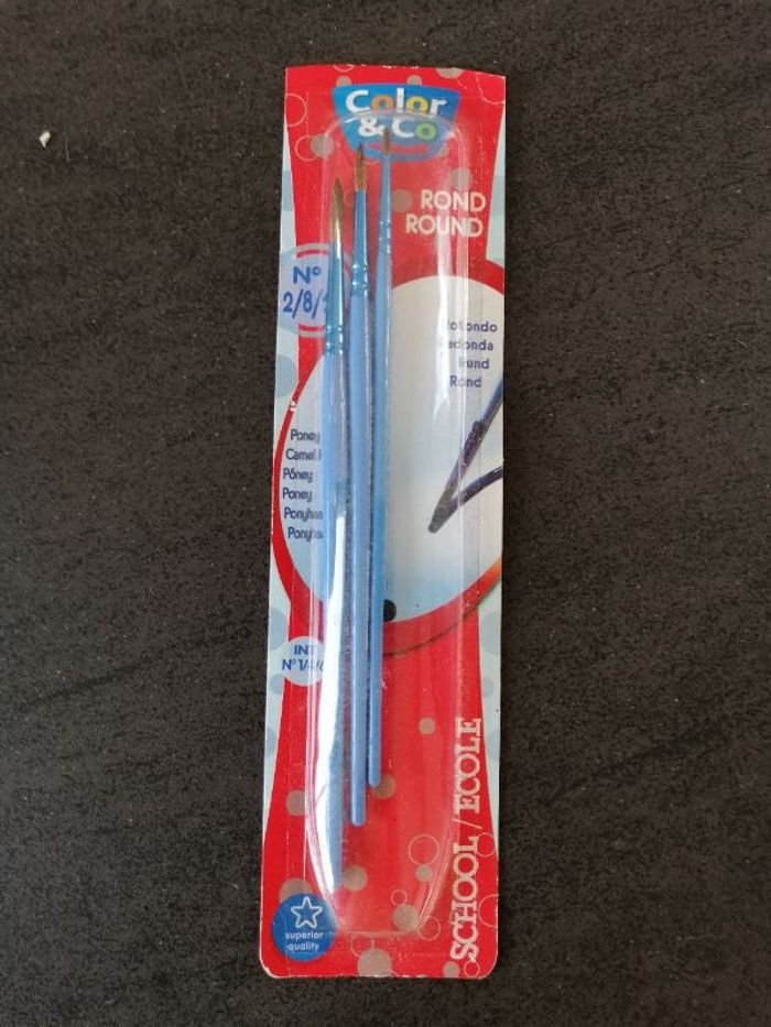 Lot de 3 pinceaux neufs sous blister Numéros 2, 8 et 12