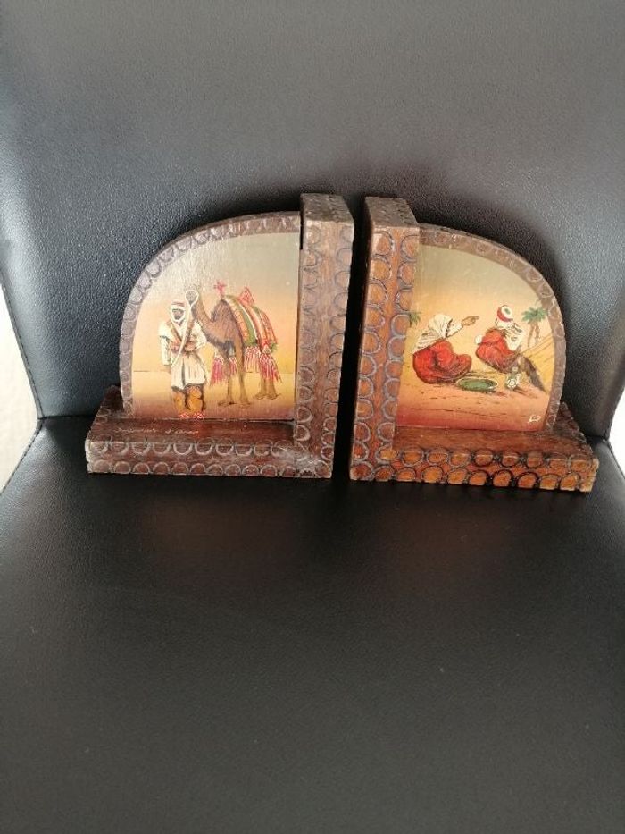 Très joli lot de 2 serres livres Algériens en bois en bon état Souvenir d'Oran