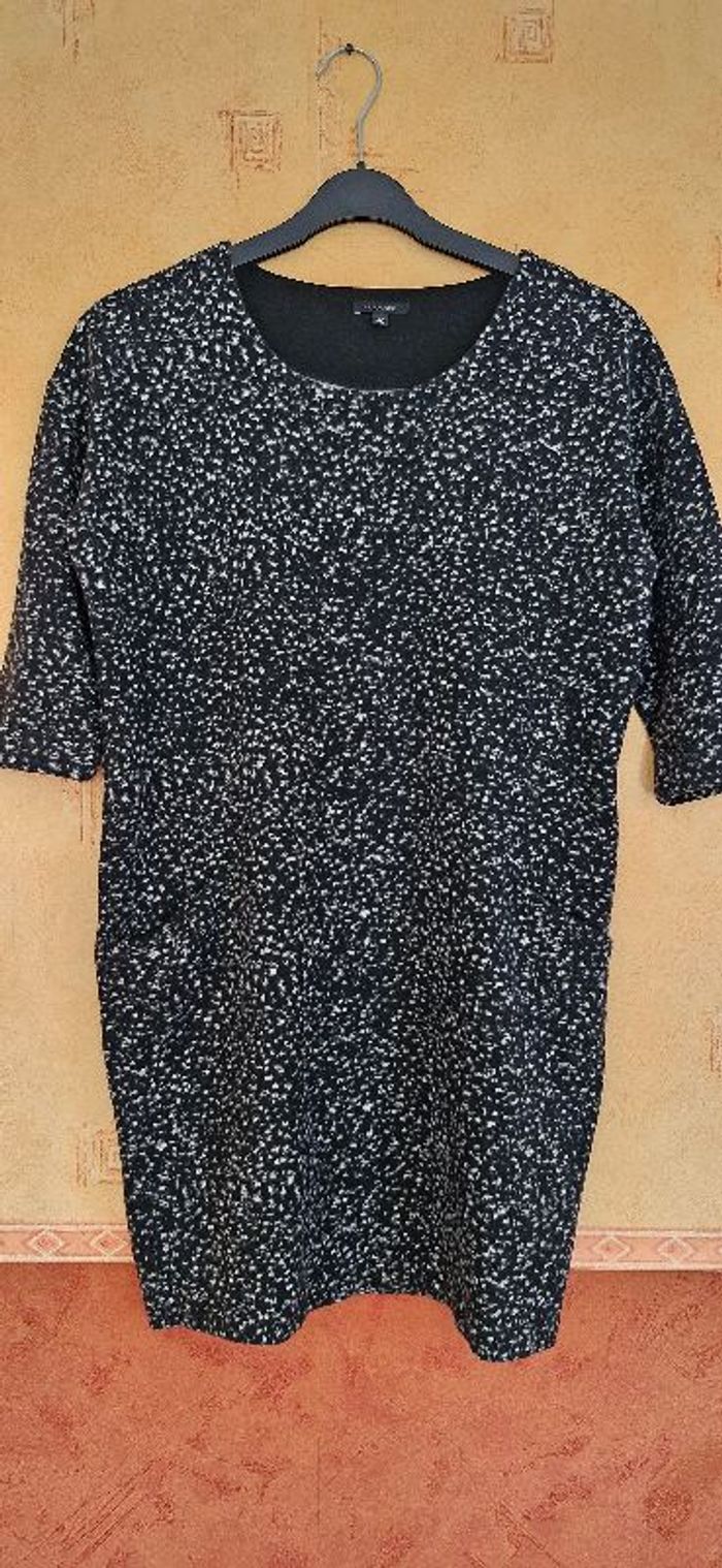 Robe noire et blanche, manches 3/4 à revers, 2 poches. Largeur épaule 55cm Largeur aisselle à aisselle 57cm Longueur 83cm