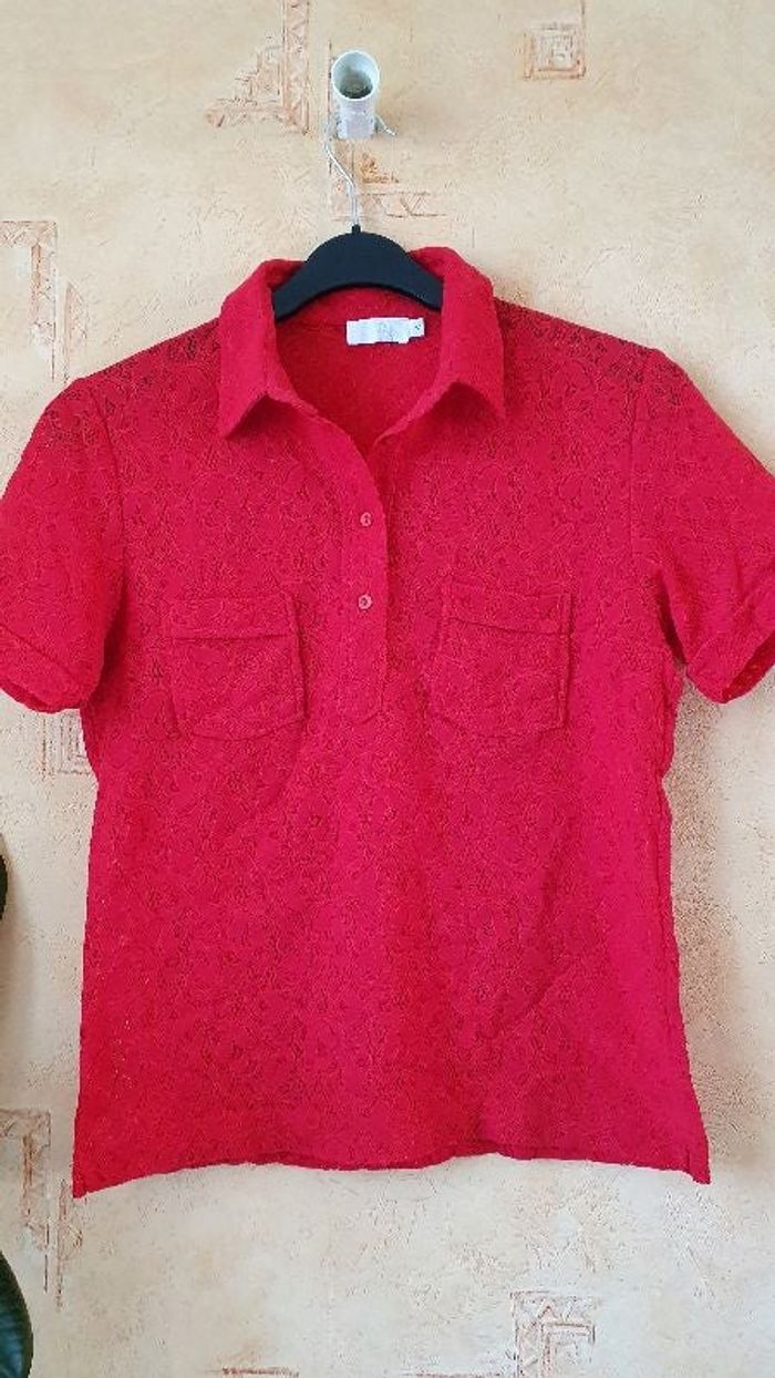 Polo rouge tout en dentelle, manches courtes. Largeur aisselle 45cm