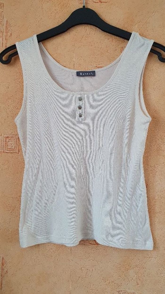 Débardeur crème, 55% soir, 45% coton Largeur 39cm