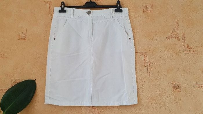 Jupe blanche, coupe droite. Taille américaine 28 correspondant à du 38. Longueur 54cm Largeur taille 42cm