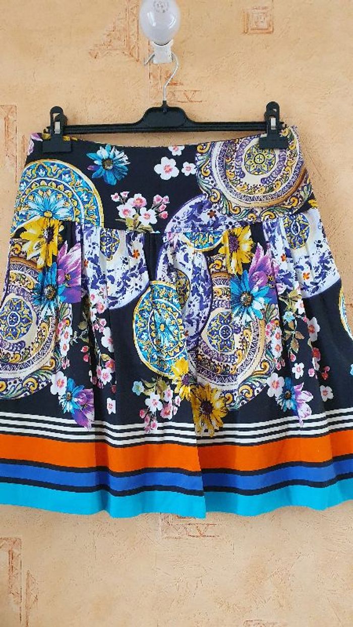 Jupe multicolore avec doublure. 100% coton. Peu porté Largeur taille 40cm Longueur 53cm