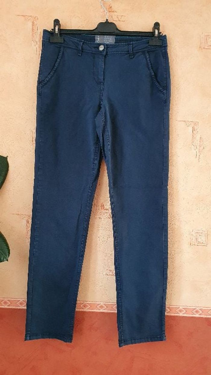 Pantalon bleu marine, coupe droite 97% coton, 3% élasthanne Longueur 97 cm