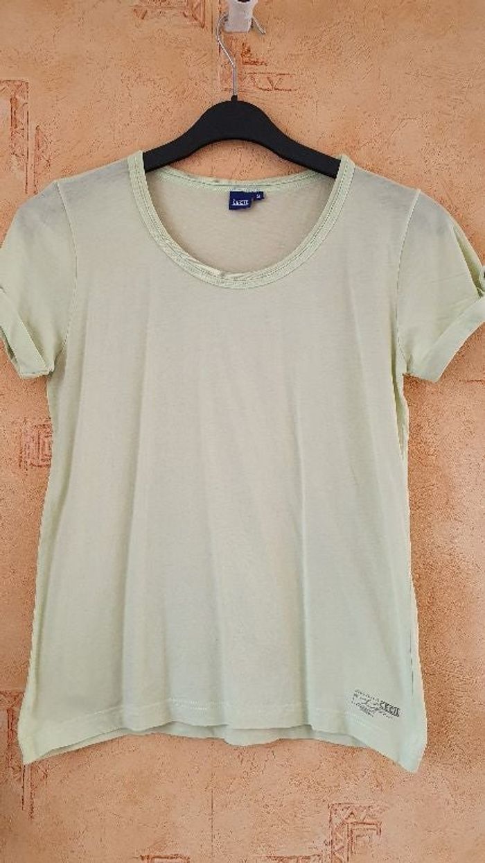 T.shirt vert anis, manches courtes Largeur aisselles 44cm Largeur épaules 38cm Longueur 60cm