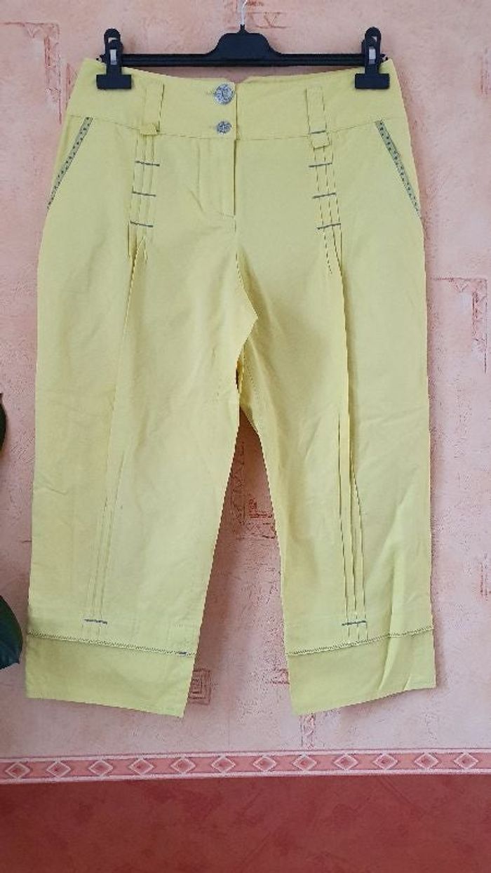 Pantacourt jaune, tissu brillant 62% coton, 38% polyamide