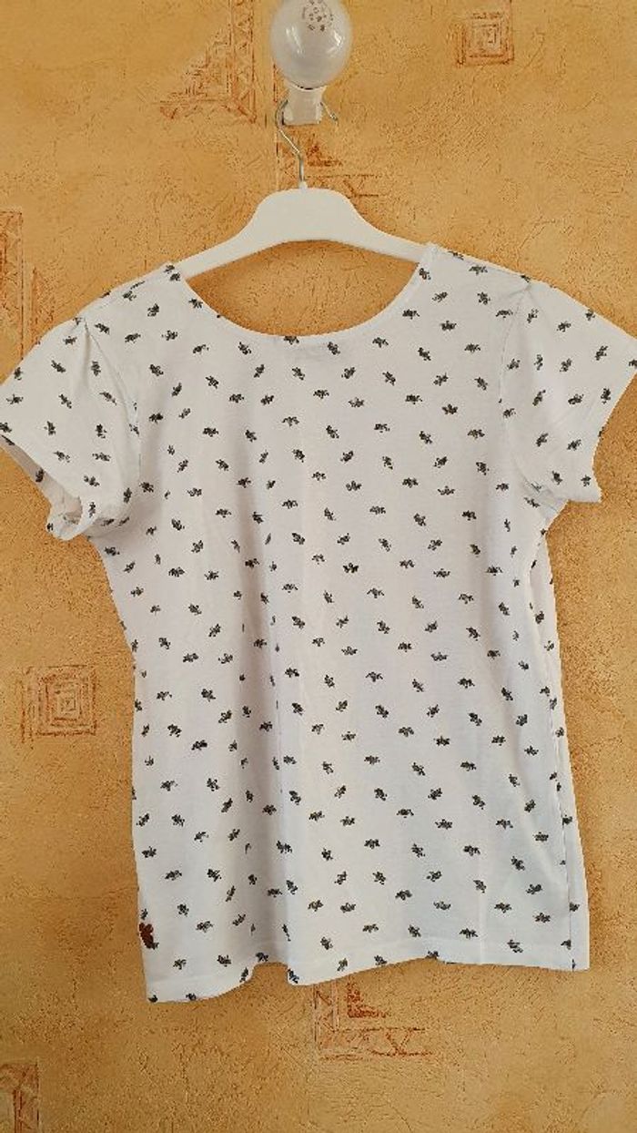 T.shirt blanc manches courtes, motif abeille, petit nœud dans le dos.