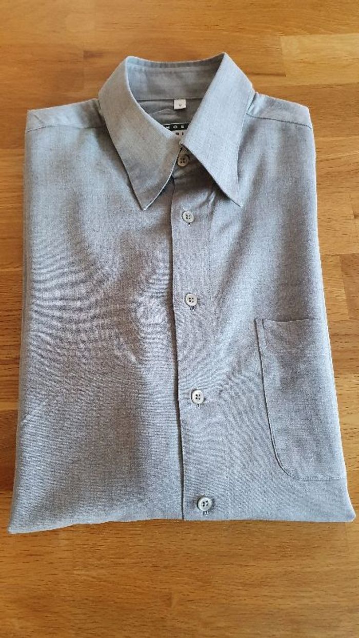 Chemise grise, manches longues Encolure M Largeur d'aisselle à aisselle 58cm Longueur 81cm Largeur épaule 48cm Longueur manches 77cm 60% acrylique 40% viscose