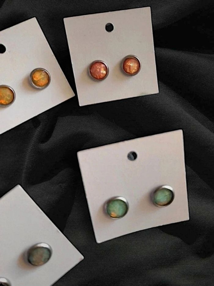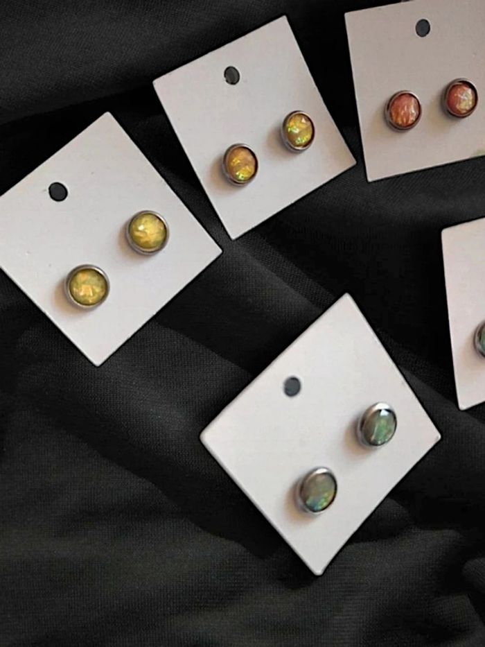 Lot 5 paires puces d'oreilles opale holographique inox  🇨🇵 Fabrication Artisanale - Ø 8mm - photo numéro 4