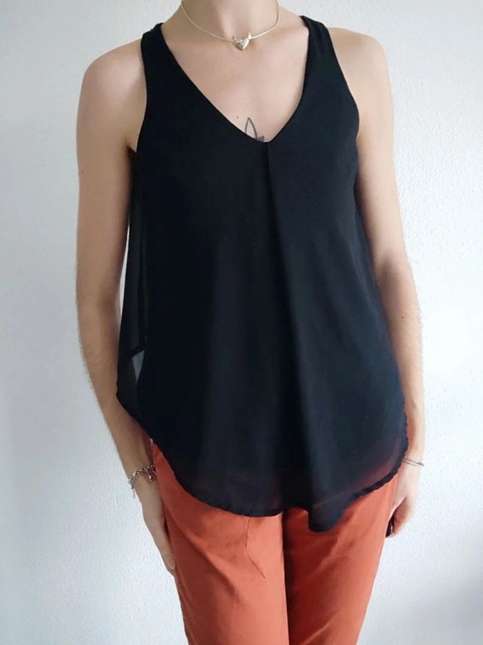Débardeur froncé fluide noir dos transparent - 36/S - photo numéro 1