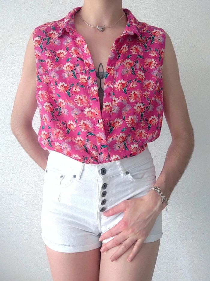 Chemisier sans manche fuchsia fleur / LH by La Halle - 38/M - photo numéro 5