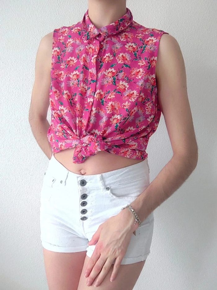 🌺 Vendeuse Éco-Responsable 🌺 ⬇️ Toutes les informations sur l'article ⬇️  ⁠෴﹏෴﹏෴﹏෴﹏෴﹏෴ 💸 ℝ𝕖́𝕕𝕦𝕔𝕥𝕚𝕠𝕟𝕤 𝕤𝕦𝕣 𝕝𝕖𝕤 𝕃𝕠𝕥𝕤 💸 🌱 𝟐 𝐚𝐫𝐭𝐢𝐜𝐥𝐞𝐬 : -5% ☘️ 𝟑 𝐚𝐫𝐭𝐢𝐜𝐥𝐞𝐬 : -10% 🍀 𝟓 𝐚𝐫𝐭𝐢𝐜𝐥𝐞𝐬 : -15% 🌿 𝟏𝟎 𝐚𝐫𝐭𝐢𝐜𝐥𝐞𝐬 : Réduction supplémentaire  ⁠෴﹏෴﹏෴﹏෴﹏෴﹏෴ 🗂️ 𝗖𝗮𝘁𝗲́𝗴𝗼𝗿𝗶𝗲 : #flocofemme38 📏 𝗧𝗮𝗶𝗹𝗹𝗲 : 38/M 🏷️ 𝗠𝗮𝗿𝗾𝘂𝗲 : LH by La Halle 🎨 𝗖𝗼𝗹𝗼𝗿𝗶𝘀 : Rose fuchsia, corail, blanc, vert émeraude, Lila, violet pastel 🏁 𝗧𝗵𝗲̀𝗺𝗲 / 𝗠𝗼𝘁𝗶𝗳 : Fleur, floral, fleuri, feuille, feuillage 🧵 𝗖𝗼𝗺𝗽𝗼𝘀𝗶𝘁𝗶𝗼𝗻 : Synthétique 🌍 𝗣𝗮𝘆𝘀 𝗱𝗲 𝗙𝗮𝗯𝗿𝗶𝗰𝗮𝘁𝗶𝗼𝗻 : Non mentionné ❌ 𝗗𝗲́𝗳𝗮𝘂𝘁(𝘀) : Aucun 📜 𝗗𝗲́𝘁𝗮𝗶𝗹𝘀 𝘀𝘂𝗽𝗽𝗹𝗲́𝗺𝗲𝗻𝘁𝗮𝗶𝗿𝗲𝘀 : Blouse sans manches. Col chemise. Les boutons se détachent. Tissu léger et fluide. Idéal pour l'été en le portant noué façon crop-top. ෴﹏෴﹏෴﹏෴﹏෴﹏෴ 🌈 𝑴𝒆𝒔 𝒎𝒆𝒏𝒔𝒖𝒓𝒂𝒕𝒊𝒐𝒏𝒔 : - 1m82 / 182 cm - Hanche ≈ 85 cm - Taille ≈ 74 cm - Bonnet A ෴﹏෴﹏෴﹏෴﹏෴﹏෴ 🛍️ 𝐷𝑟𝑒𝑠𝑠𝑖𝑛𝑔 𝑑𝑒 : #delnathalie Bohème boho hippie indie champêtre printemps spring prairie top marcel fairycore elf pop color estival été summer festival coquette girly mignon kawaii vintage