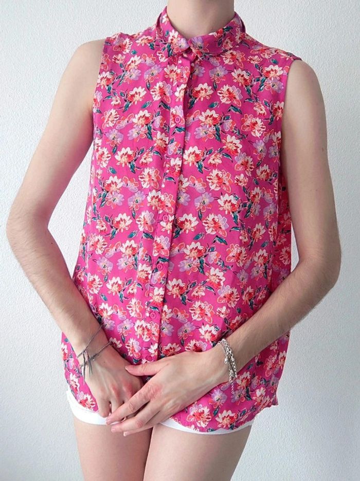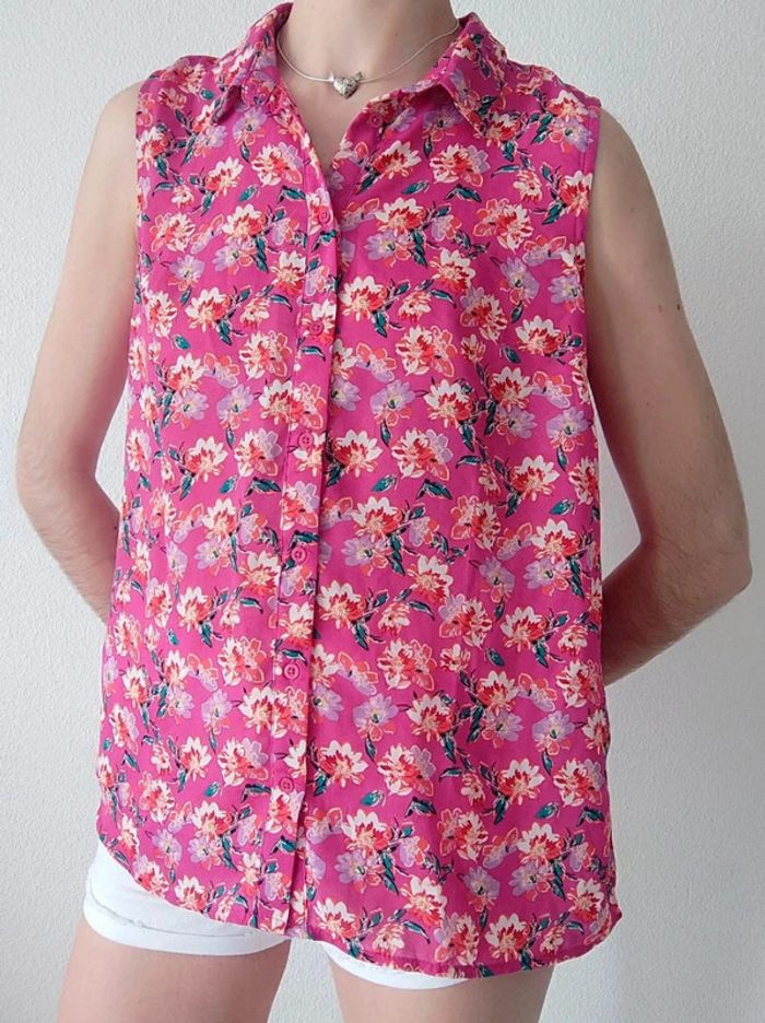 Chemisier sans manche fuchsia fleur / LH by La Halle - 38/M - photo numéro 2