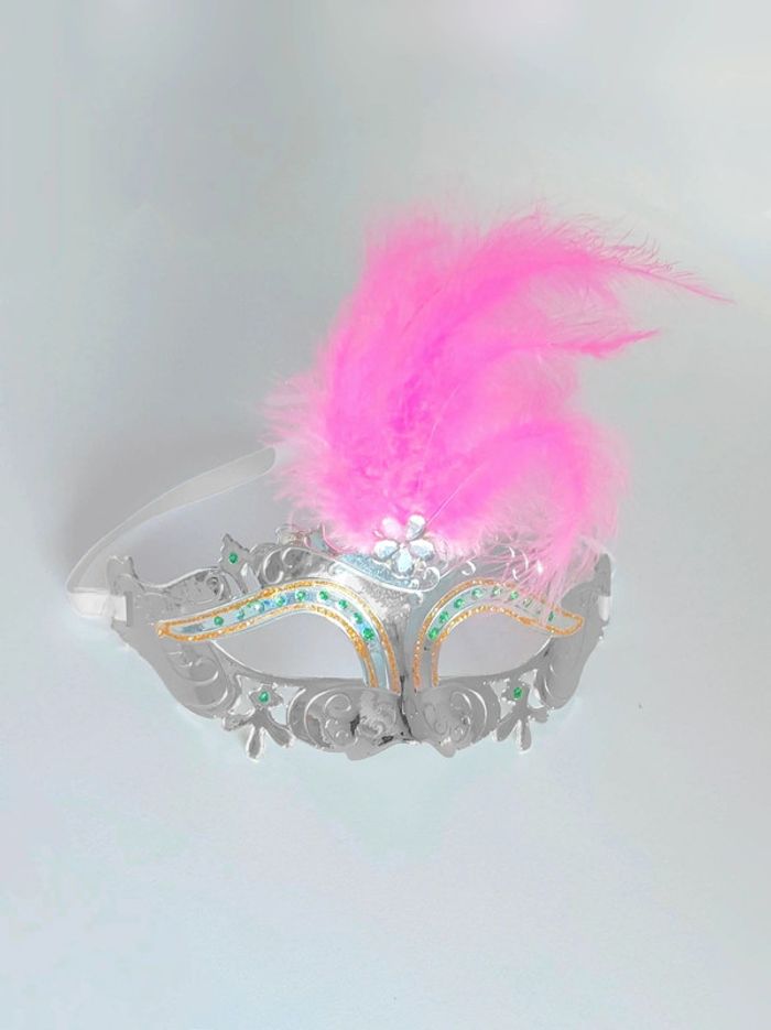 Masque vénitien argenté plume rose / Amazon - Adulte