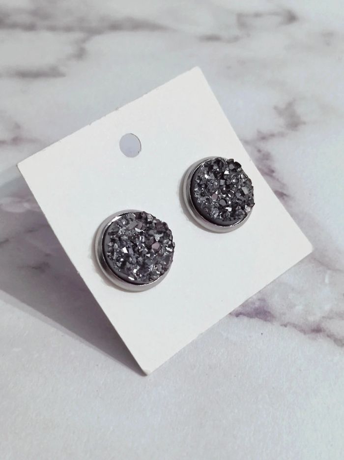 Boucles puces d'oreilles rond quartz argent foncé inox 🇨🇵 Fabrication Artisanale - Ø 12mm - photo numéro 1