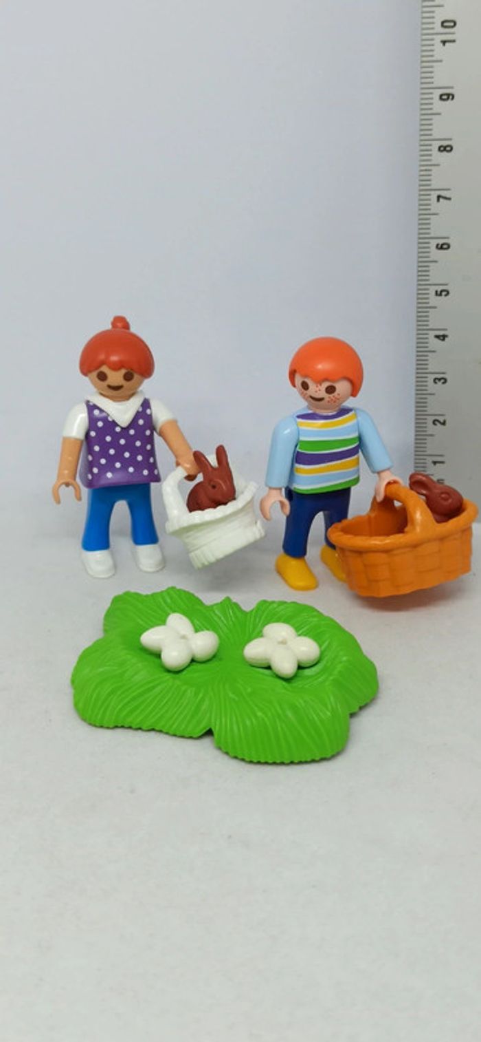 Enfants fille garçon avec paniers et lapins de pâques playmobil - photo numéro 1