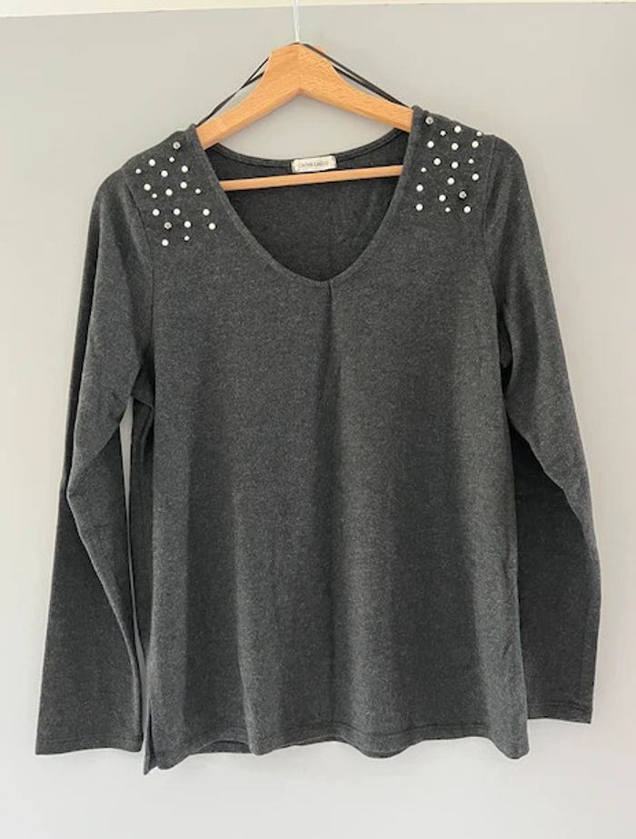 ⚠️ étiquette découpée mais c'est bien un vêtement taille M voir dimensions) Pull Marque : Cache cache Couleur : Gris foncé Taille : M Dimensions (a plat) : aisselle à aisselle 46cm longueur 60cm manche 57cm En très bon état porté 2 fois.