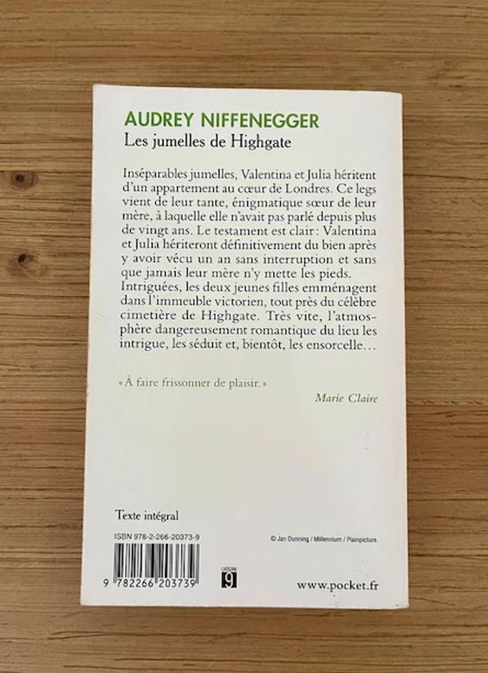 Livre de poche en très bon état Beaucoup d'autres livres (policier - thriller - roman - histoire vraie - romance - jeunesse - cuisine - ...) à vendre également Inséparables jumelles, Valentina et Julia héritent d’un appartement au cœur de Londres. Ce legs vient de leur tante, énigmatique sœur de leur mère, à laquelle elle n’avait pas parlé depuis plus de vingt ans. Le testament est clair : Valentina et Julia hériteront définitivement du bien après y avoir vécu un an sans interruption et sans que jamais leur mère n’y mette les pieds. Intriguées, les deux jeunes filles emménagent dans l’immeuble victorien, tout près du célèbre cimetière de Highgate. Très vite, l’atmosphère dangereusement romantique du lieu les intrigue, les séduit et, bientôt, les ensorcelle…