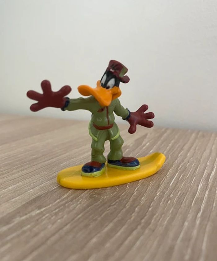 Figurine freeriders Daffy Duck Warner Bros Dimensions : 4,5cm x 5 cm Viens des céréales Weetos mais je n'ai pas retrouvé l'année (figurine pas toute jeune) En très bon état. Prix ferme merci !
