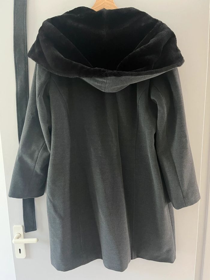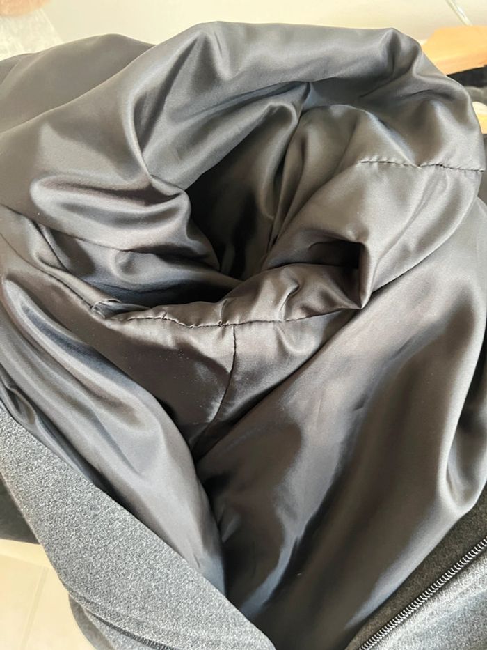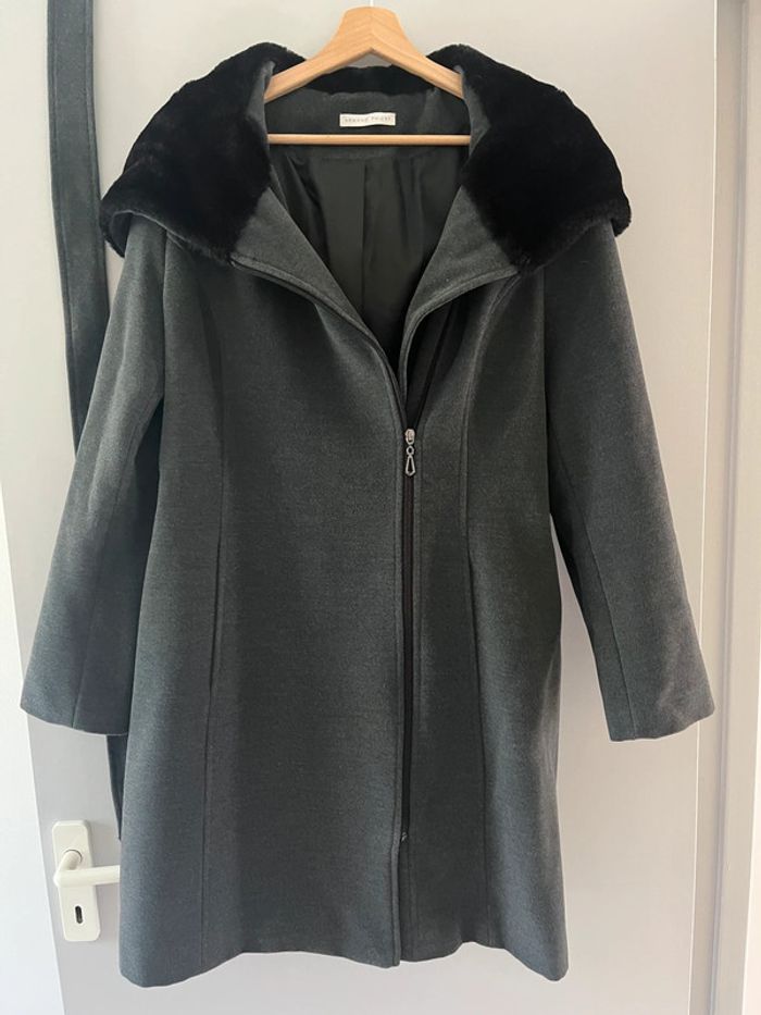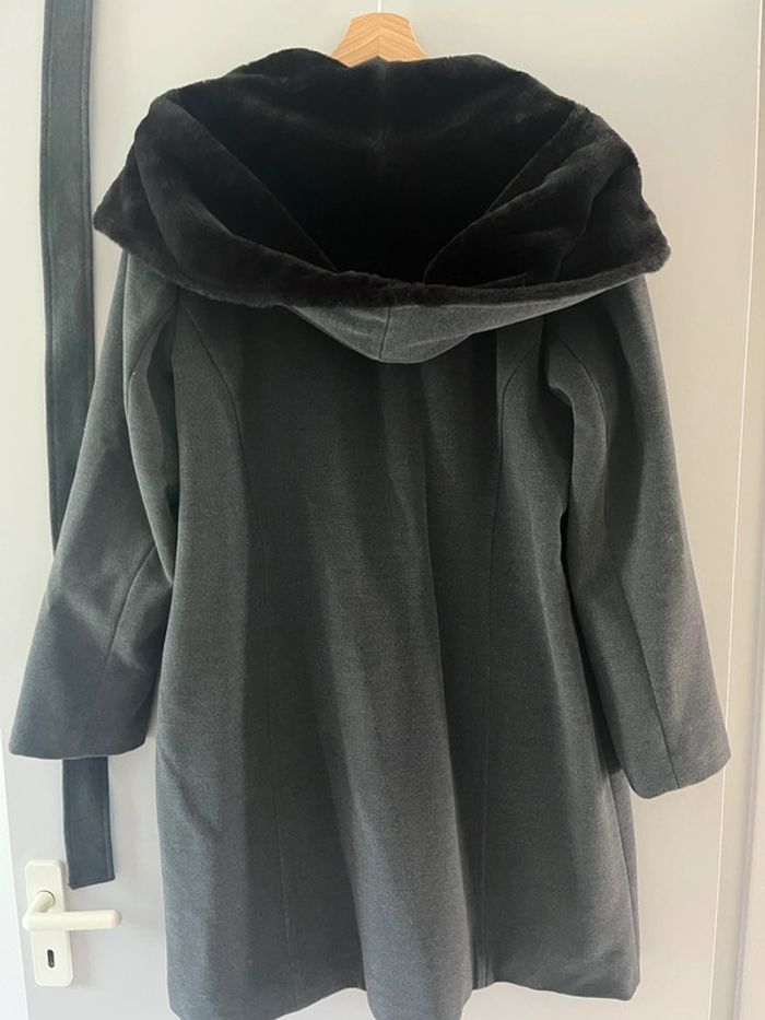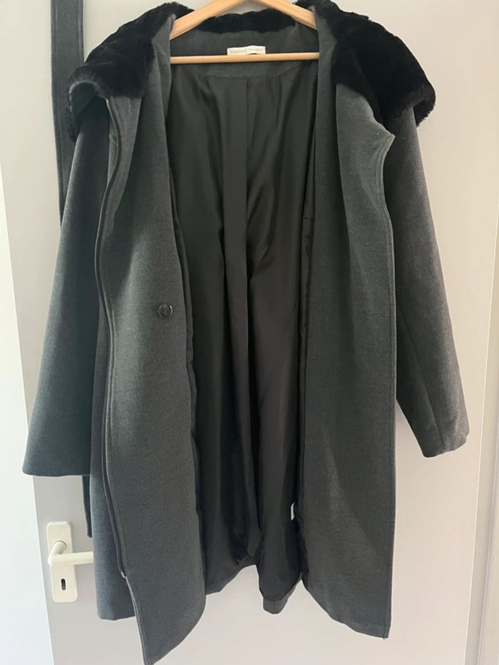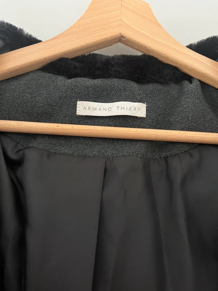 Manteau Marque : Armand Thiery Couleur : Gris, capuche noire Taille : 5 (voir dernière photo, guide des tailles du site internet) Une photo indique la matière Bouton à l'intérieur Poche à l'intérieur Vendue avec la ceinture En parfait état porté une seule fois