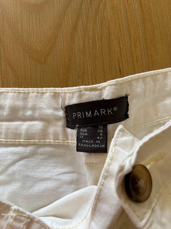 🩳 Short Marque : Primark Couleur : Jaune pâle, crème (je ne saurais pas être plus précise) Taille : 38 Matière : 100% Coton Porté 2, 3 fois grand maximum en très bon état