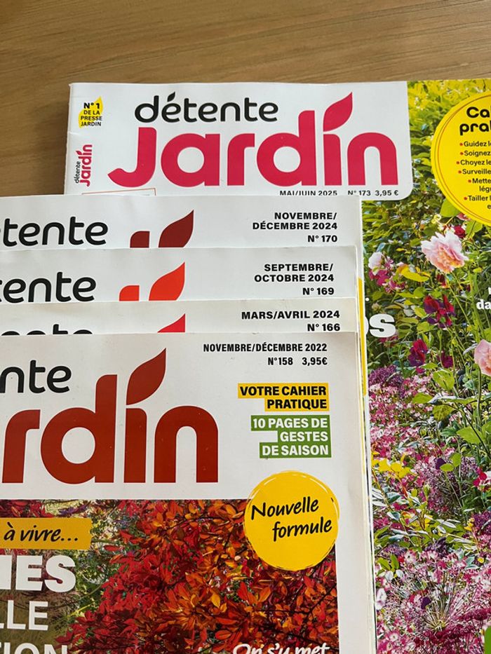 Lot 5 magazines Détente jardin En très bon état à part Dates sur une des photos Prix pour le lot, indissociable merci.