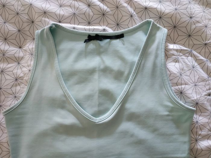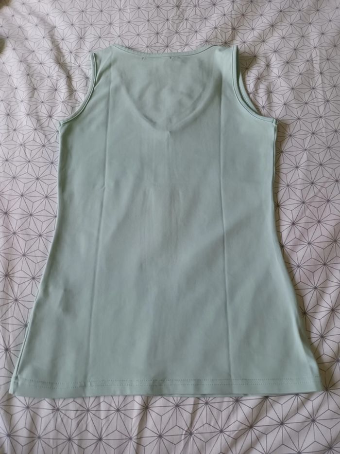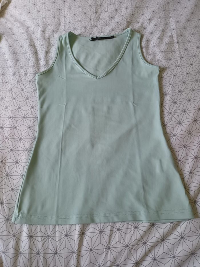 Débardeur vert menthe 94% polyamide et 6% élasthanne, Largeur sous aisselles 35 cm, hauteur 56 cm env. #debardeurfemme36 #debardeurvertclairfemme36 #debardeurvertmenthefemme36
