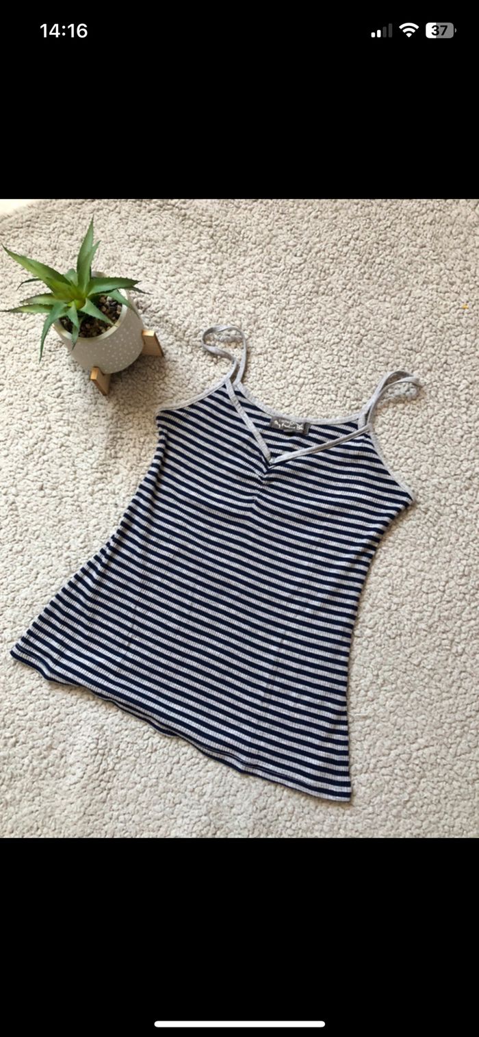débardeur à rayures marines et grises, neuf jamais porté