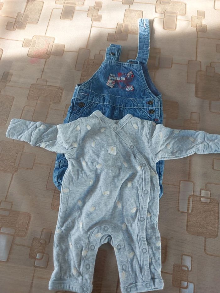 1 mois 1 salopette et 1 grenouillère sans pied Kiabi, petit Kimbaloo