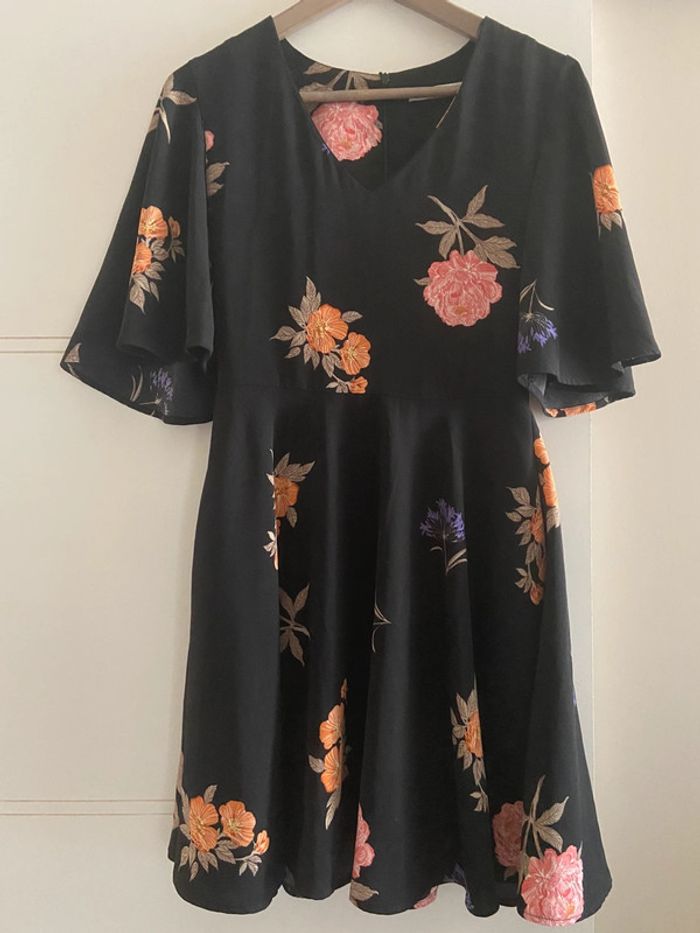 Superbe robe noir avec manches à volants taille s mango portée 1 seule fois très belle qualité
