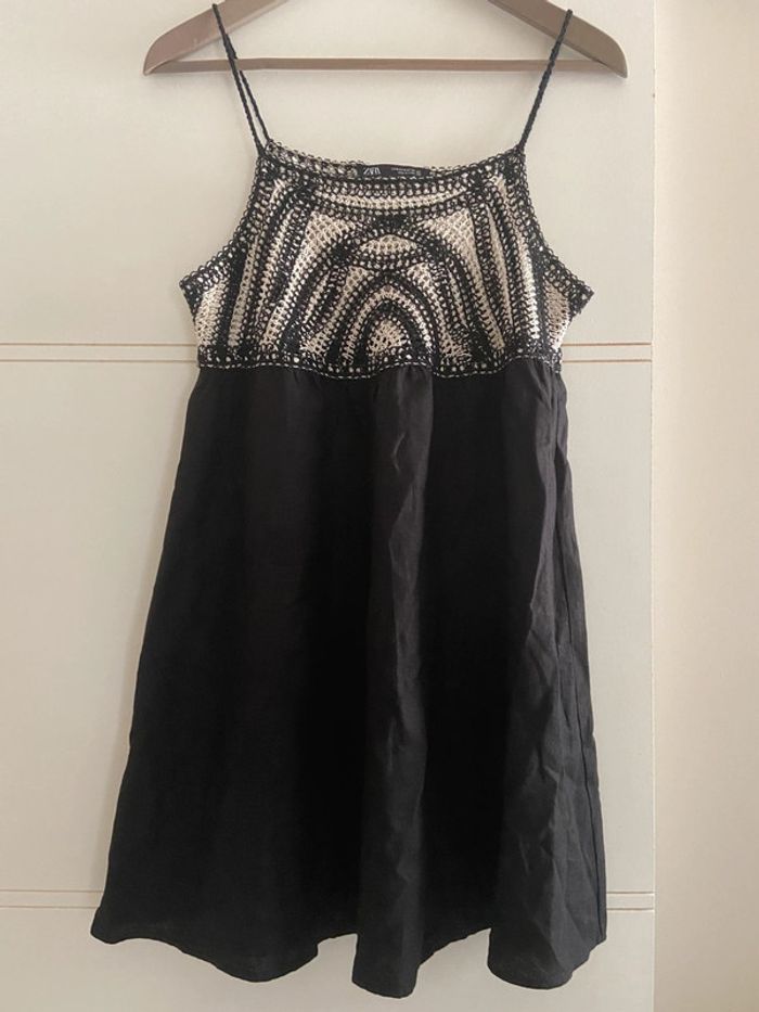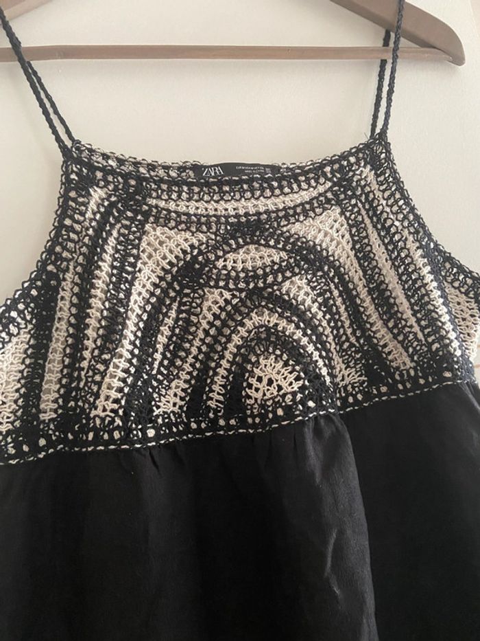 Robe d’été à bretelles noir Zara crochet et lin - photo numéro 1