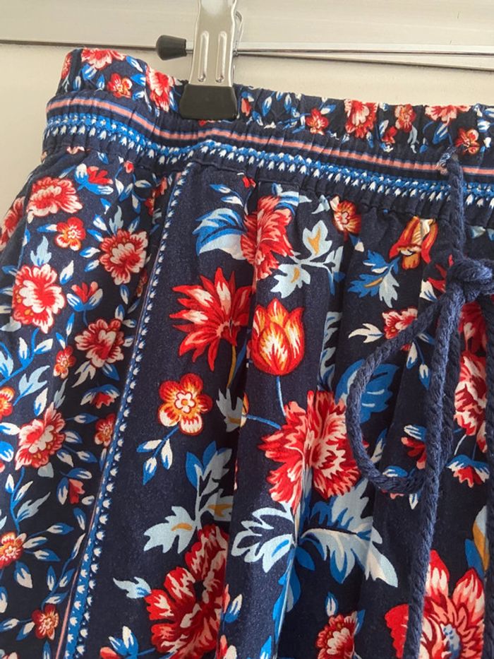 Pantalon d’été léger élastique a la taille avec ceinture pompons imprimé bleu marine taille L