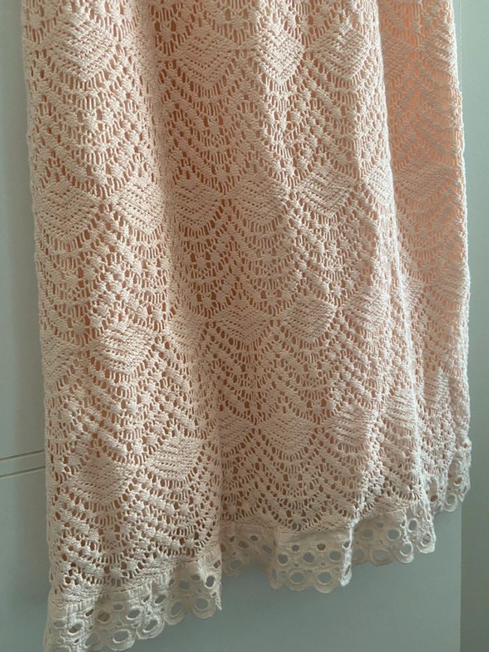 Superbe robe 100% coton en broderies et dentelle doublée belle couleur rose pêche portée 1 fois idéale pour occasion cérémonie