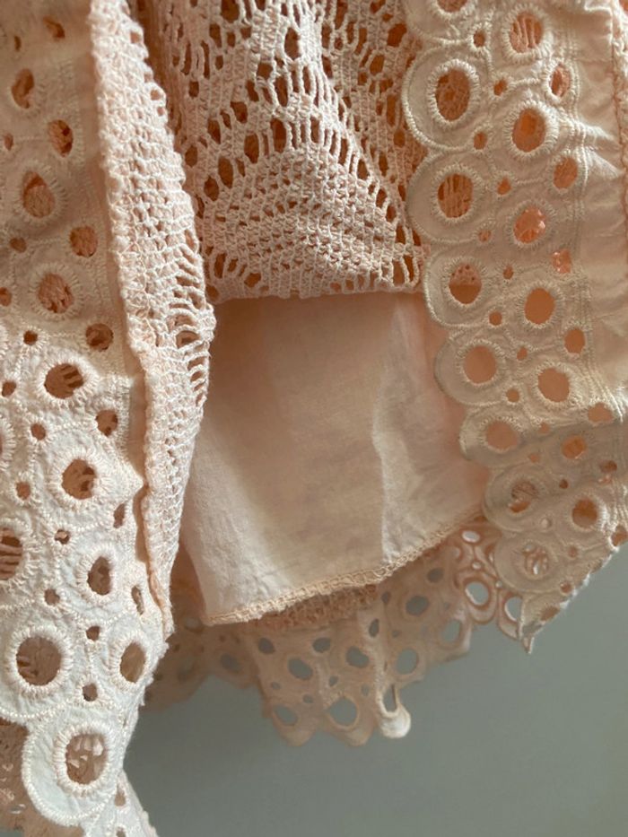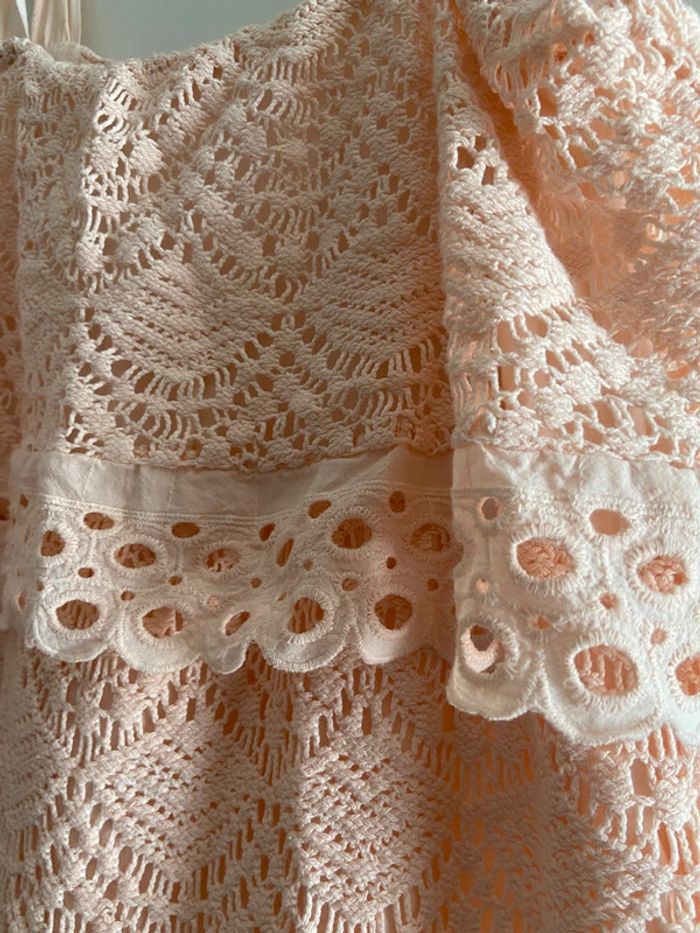 Robe d’été cérémonie en coton broderie dentelle rose pêche - photo numéro 6