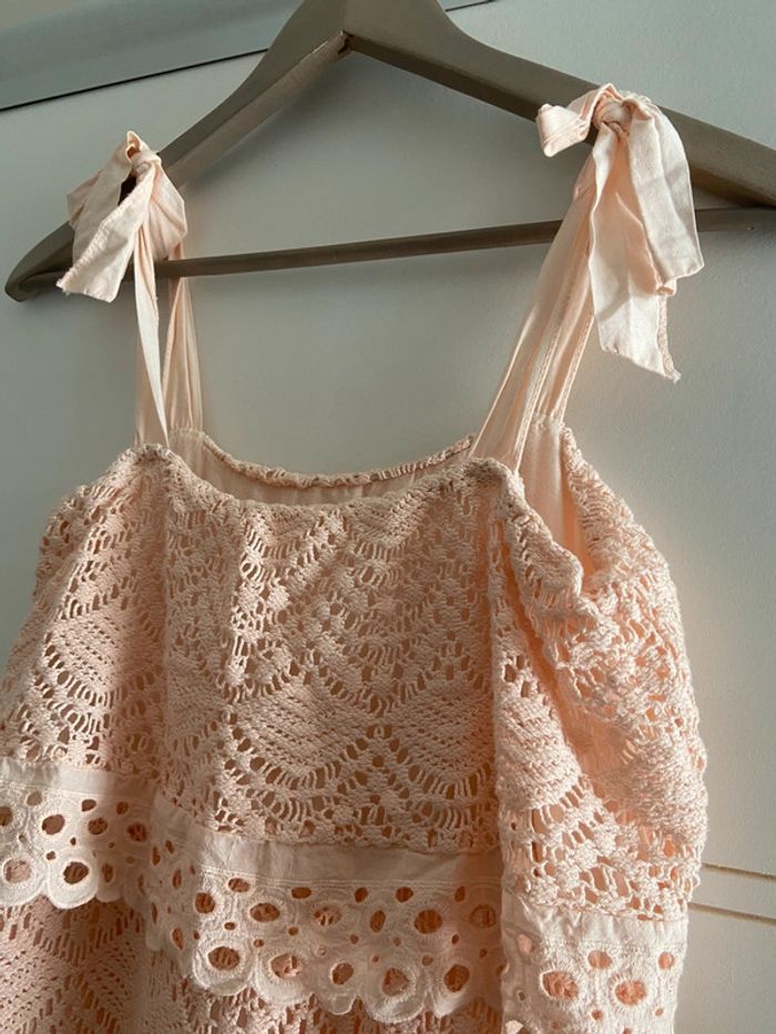 Robe d’été cérémonie en coton broderie dentelle rose pêche - photo numéro 1