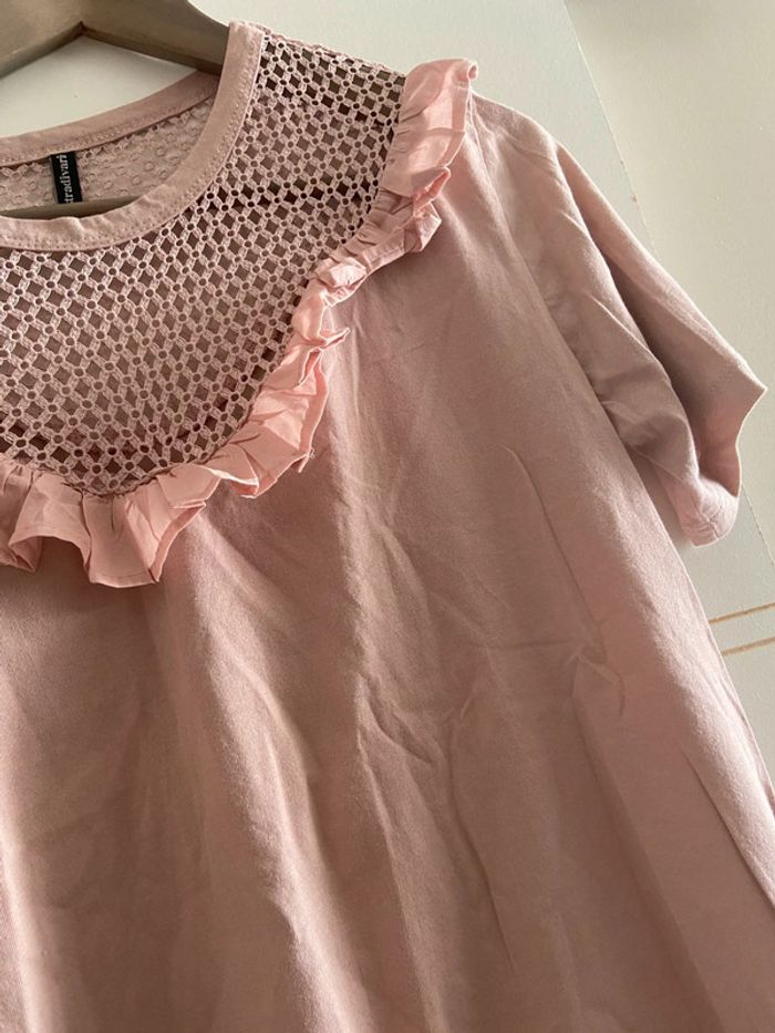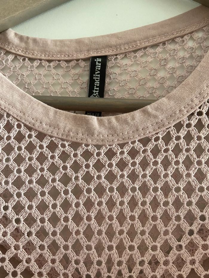 T-shirt vieux rose à froufrous et dentelle stradivarius - photo numéro 6