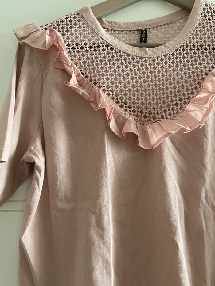 T-shirt vieux rose à froufrous et dentelle stradivarius - photo numéro 5